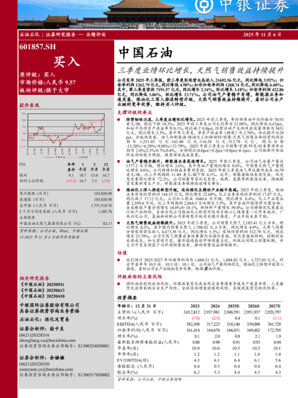 【中银证券】【202511】中国石油:三季度业绩环比增长,天然气销售效益持续提升-5页