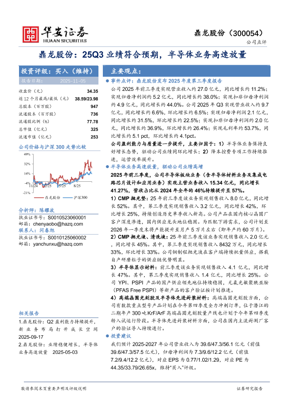 【华安证券】【202511】鼎龙股份:25Q3业绩符合预期,半导体业务高速放量-4页