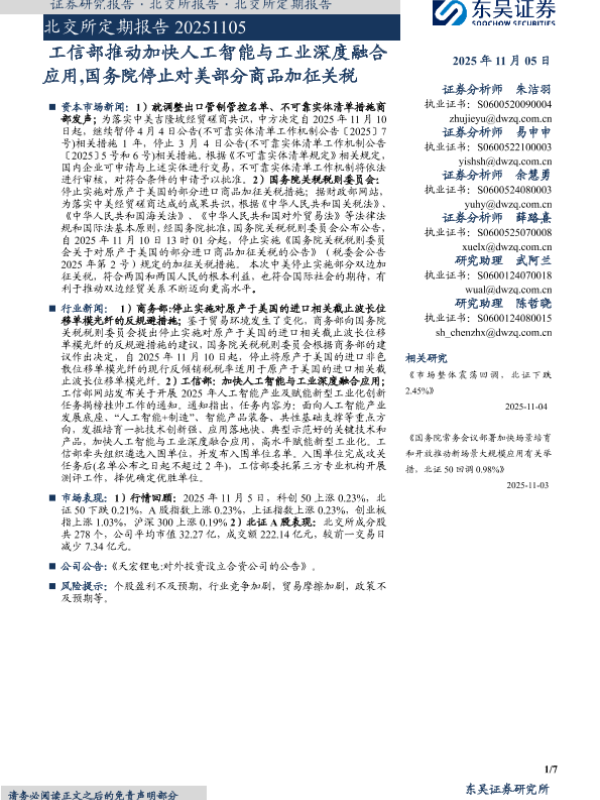 北交所 工业融合 贸易摩擦 人工智能 关税政策