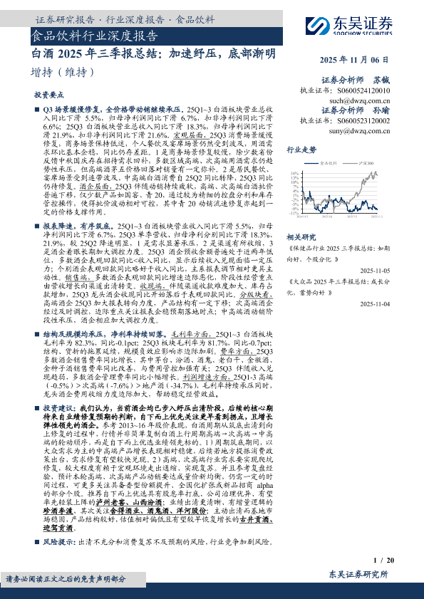 【东吴证券】【2025】白酒2025年三季报总结:加速纾压,底部渐明-20页