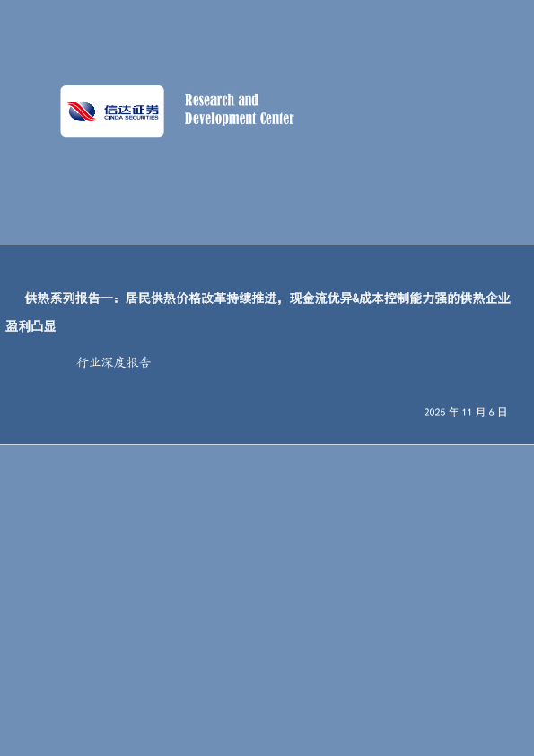 【信达证券股份有限公司 CINDASECURITIESCO.,LTD】【202511】供热系列报告一:居民供热价格改革持续推进,现金流优异&成本控制能力强的供热企业盈利凸显-25页
