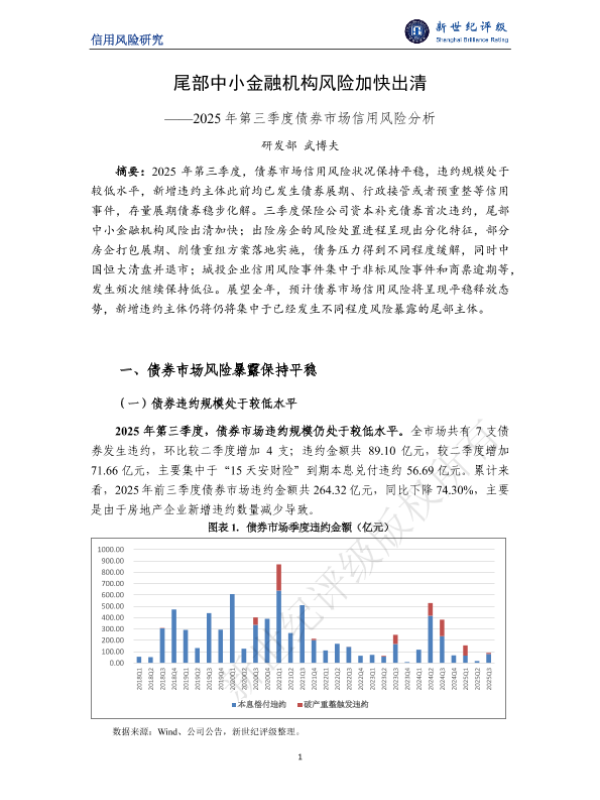 【研发部 武博夫】【2025】尾部中小金融机构风险加快出清——2025年第三季度债券市场信用风险分析-11页