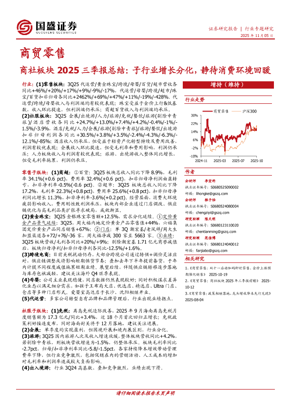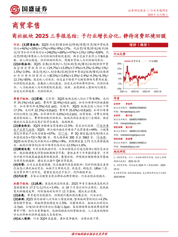 【国盛证券】【202511】商贸零售行业商社板块2025三季报总结:子行业增长分化,静待消费环境回暖-26页