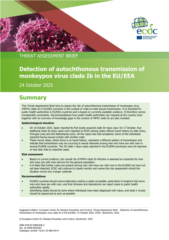 【European Centre for Disease Prevention and Control】【202510】Detection of autochthonous transmission of monkeypox virus clade Ib in the EU/EEA-11页