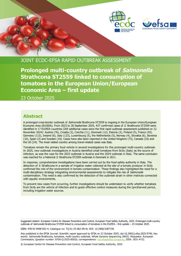 【欧洲疾病预防控制中心&欧洲食品安全局】【202510】Prolonged multi-country outbreak of Salmonella Strathcona ST2559 linked to consumption of tomatoes in the EU/EEA – first update-19页