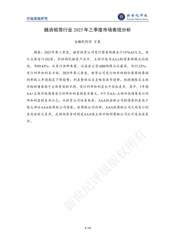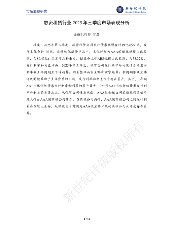 【金融机构部 宫晨】【2025】融资租赁行业2025年三季度市场表现分析-11页