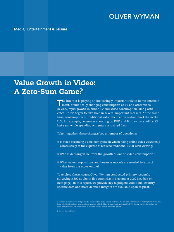 【Oliver Wyman】【2009】Value Growth in Video A Zero-Sum Game?-12页
