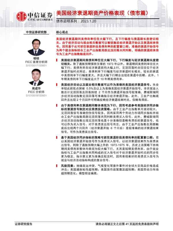 【中信证券】【20230120】美国经济衰退期资产价格表现(债市篇)-41页