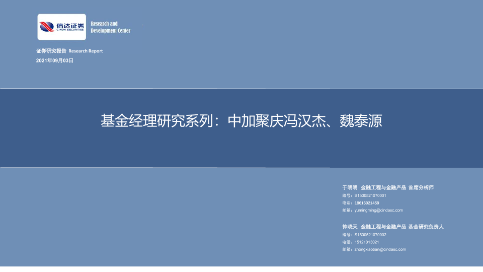 【信达证券】【20210903】基金经理研究系列:中加聚庆冯汉杰、魏泰源-23页