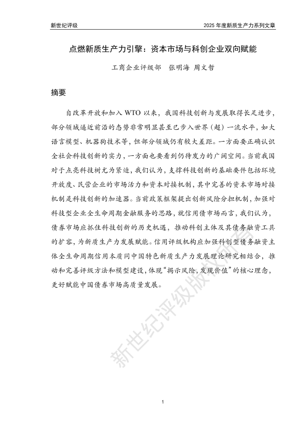 【新世纪评级】【202503】点燃新质生产力引擎:资本市场与科创企业双向赋能-27页