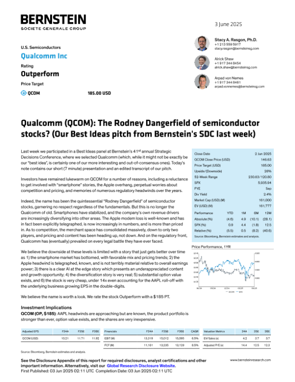 【Bernstein】【202506】Qualcomm(QCOM) – The Rodney Dangerfield of Semiconductor Stocks-25页