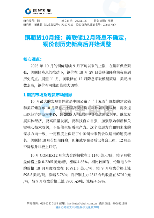 【国金期货】【202511】铜期货10月报:美联储12月降息不确定,铜价创历史新高后开始调整-4页