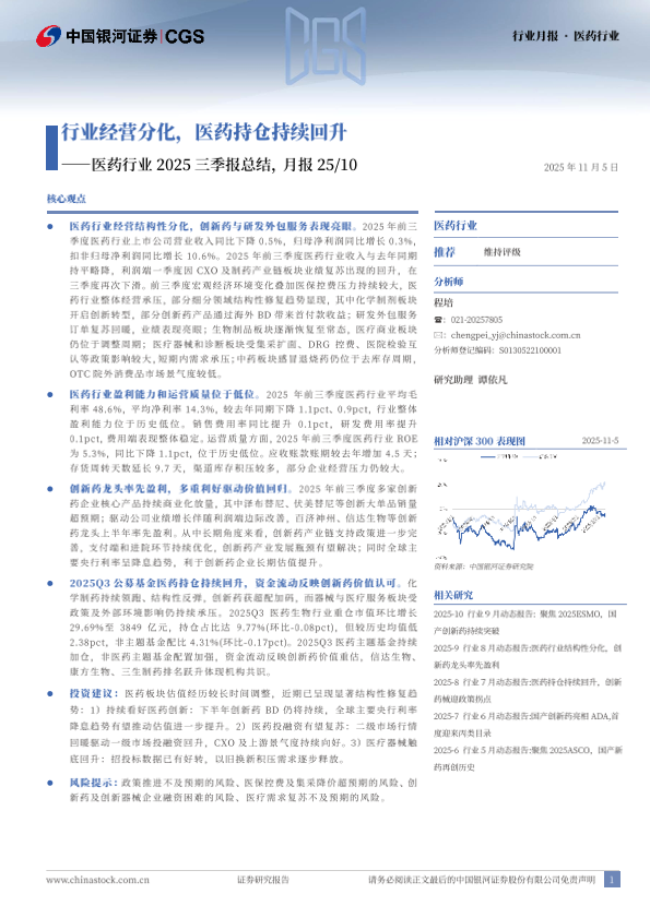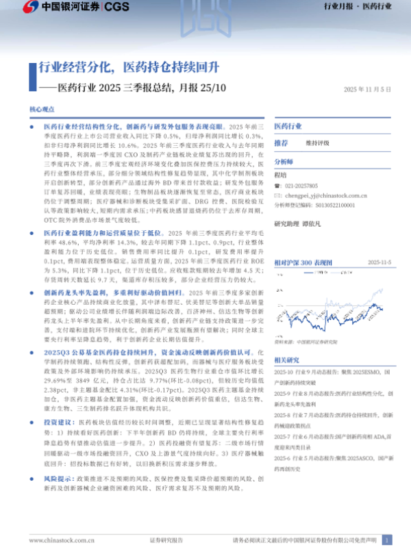 【银河证券】【202511】医药行业2025三季报总结,月报25/10-16页