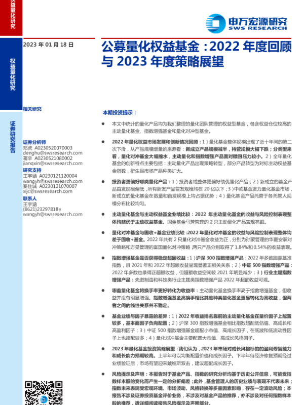 【申万宏源】【20230118】公募量化权益基金:2022年度回顾与2023年度策略展望-21页