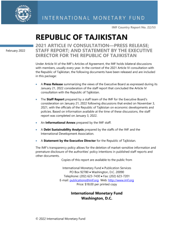 【国际货币基金组织】【202202】Republic of Tajikistan 2021 Article IV Consultation—Press Release, Staff Report, and Statement by Executive Director for the Republic of Tajikistan-100页