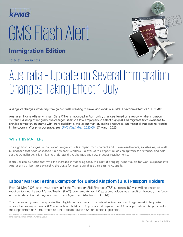 【KPMG】【202306】Australia – Update on Several Immigration Changes Taking Effect 1 July-5页