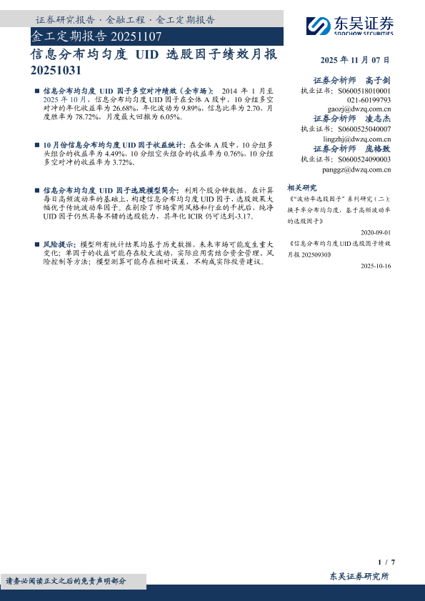 【东吴证券】【202511】信息分布均匀度 UID选股因子绩效月报-7页