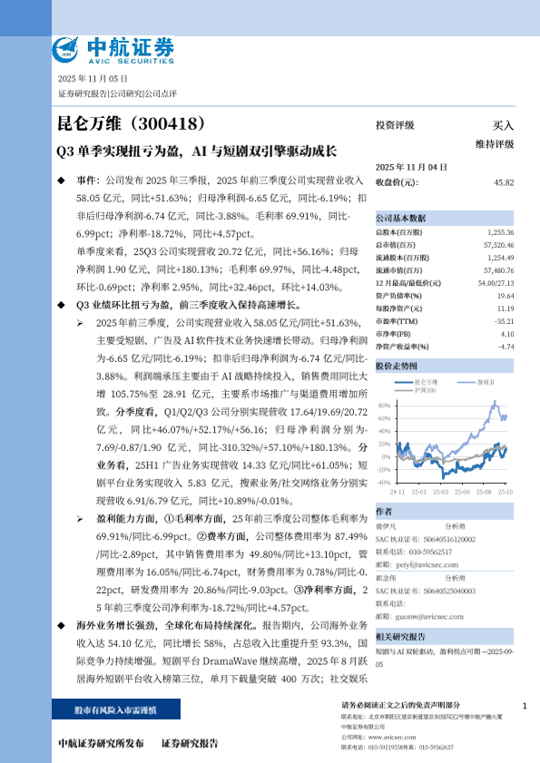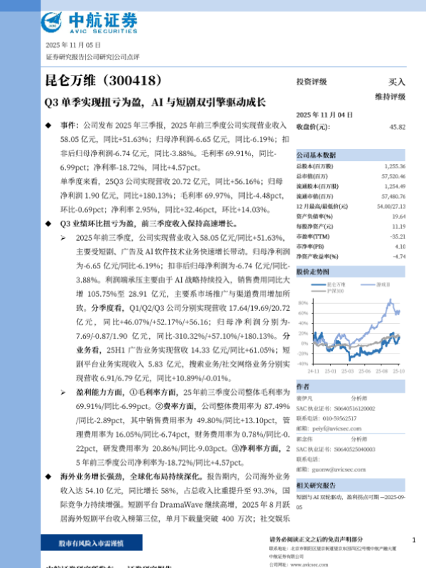 【中航证券】【202511】Q3单季实现扭亏为盈,AI与短剧双引擎驱动成长-5页