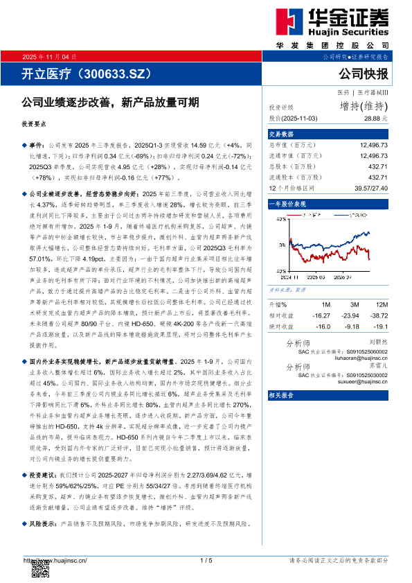 【华金证券】【202511】公司业绩逐步改善,新产品放量可期-5页