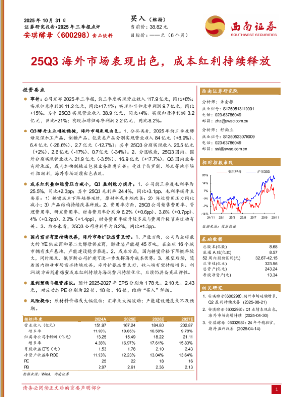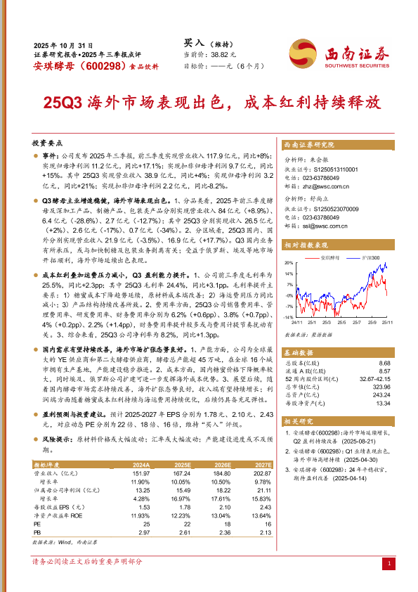 【西南证券】【2025】安琪酵母(600298)2025年三季报点评-5页