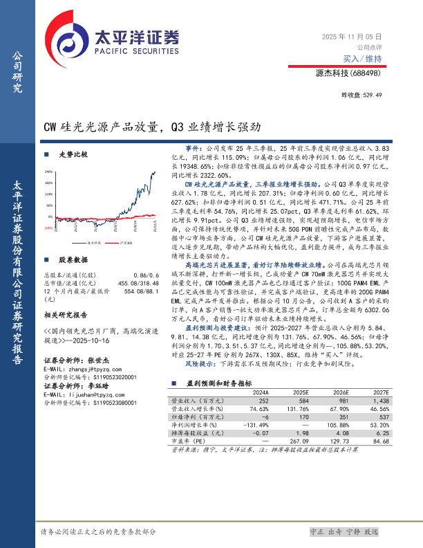 【太平洋证券】【202511】CW硅光光源产品放量,Q3业绩增长强劲-4页