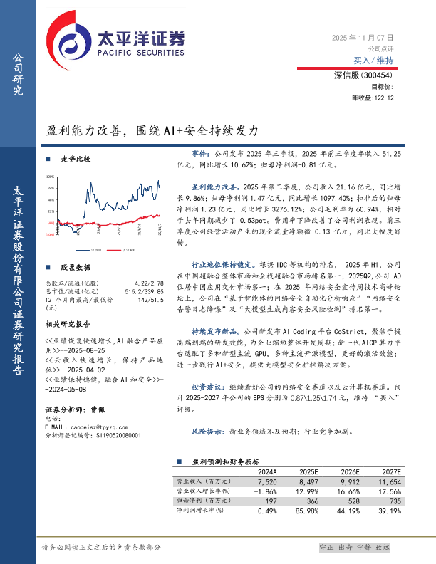 【太平洋证券】【202511】盈利能力改善,围绕AI+安全持续发力-5页