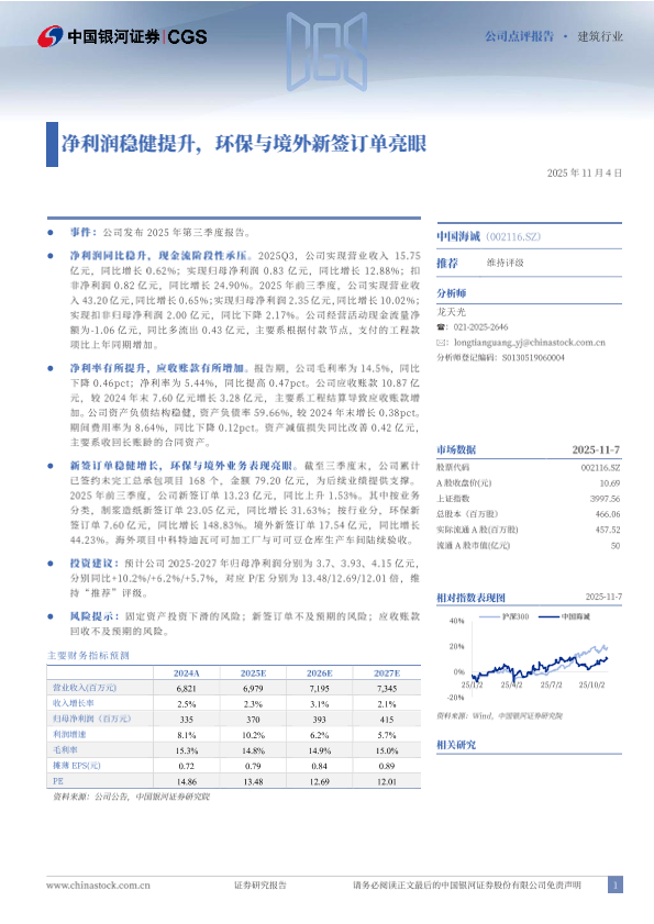 环保 净利润 建筑行业 新签订单 境外业务