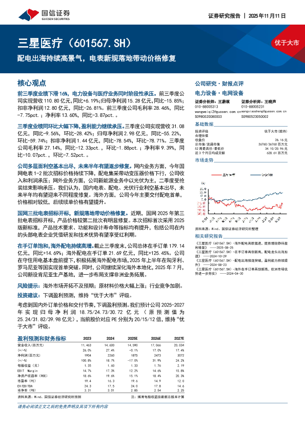 【国信证券】【202511】配电出海持续高景气,电表新规落地带动价格修复-6页