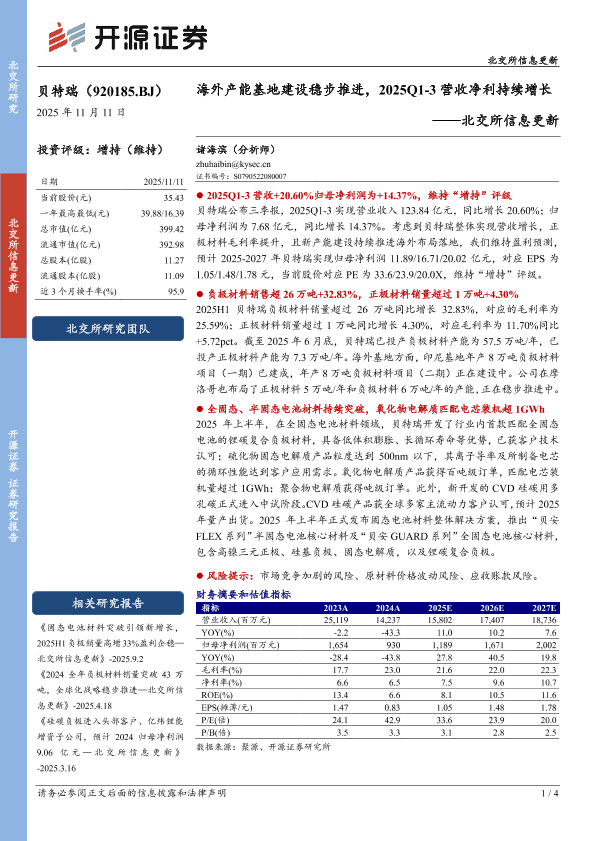 【开源证券】【202511】海外产能基地建设稳步推进,2025Q1-3营收净利持续增长-4页