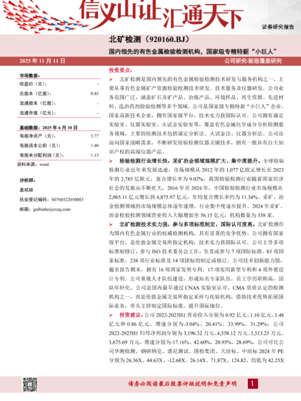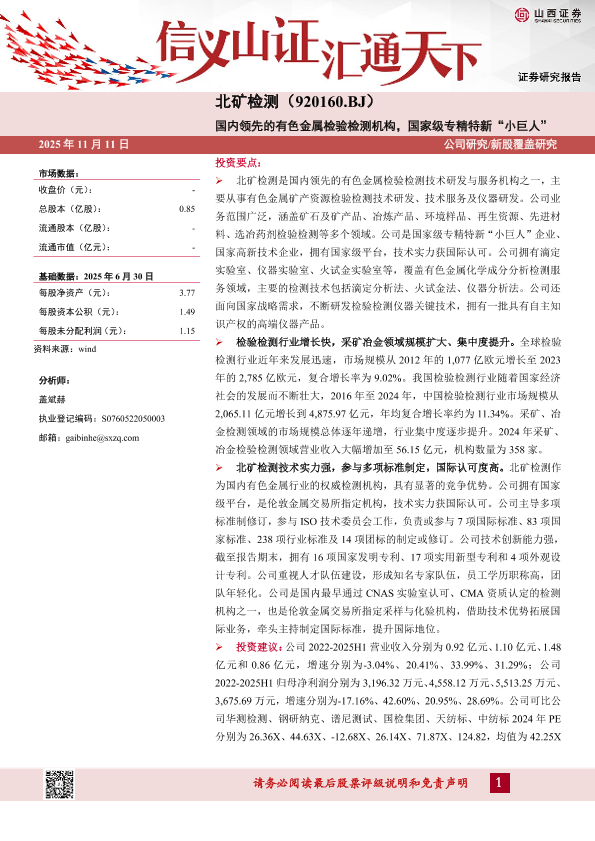 【山西证券】【202511】国内领先的有色金属检验检测机构,国家级专精特新“小巨人”-13页