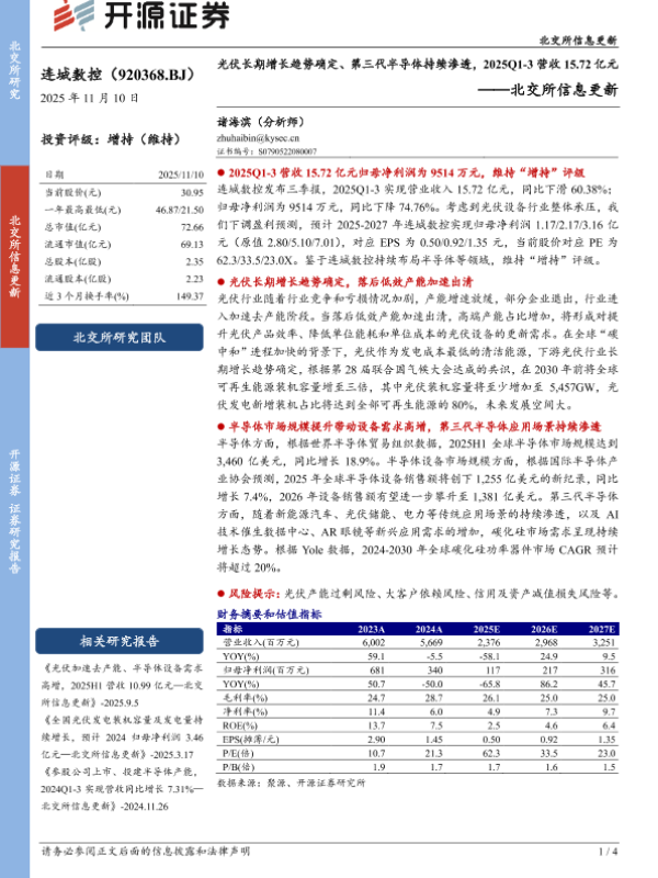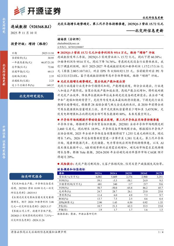 【开源证券】【202511】光伏加速去产能、半导体设备需求 高增,2025H1营收 10.99亿元—北交 所信息更新-4页