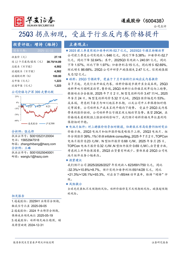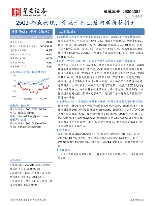 【华安证券】【202511】25Q3拐点初现,受益于行业反内卷价格提升-4页