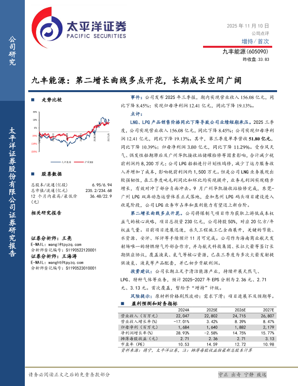 【太平洋证券】【202511】九丰能源:第二增长曲线多点开花,长期成长空间广阔-4页