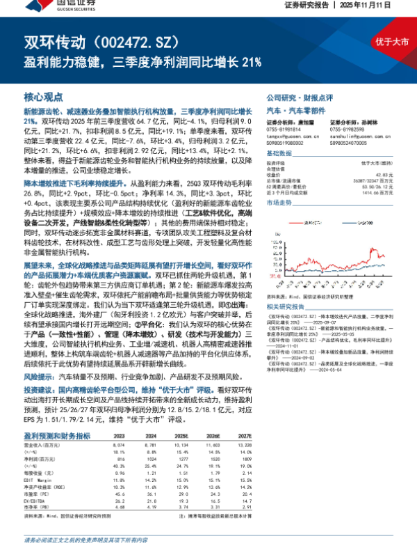 【国信证券】【202511】优于大市 双环传动(002472.SZ)盈利能力稳健,三季度净利润同比增长 21%-8页