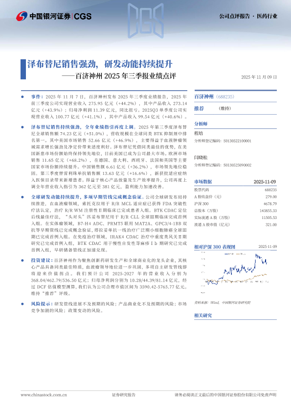【银河证券】【202511】泽布替尼销售强劲,研发动能持续提升——百济神州 2025年三季报业绩点评-4页