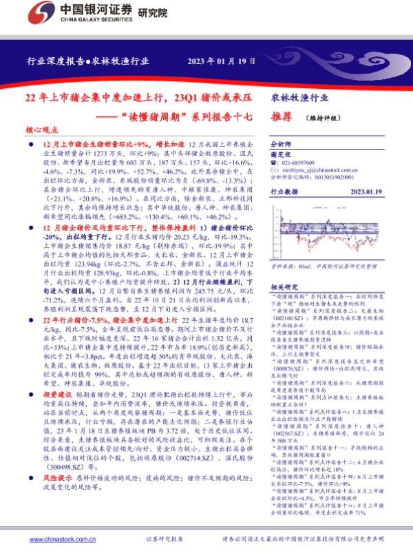 【银河证券】【20230119】农林牧渔行业“读懂猪周期”系列报告十七:22年上市猪企集中度加速上行,23Q1猪价或承压-17页