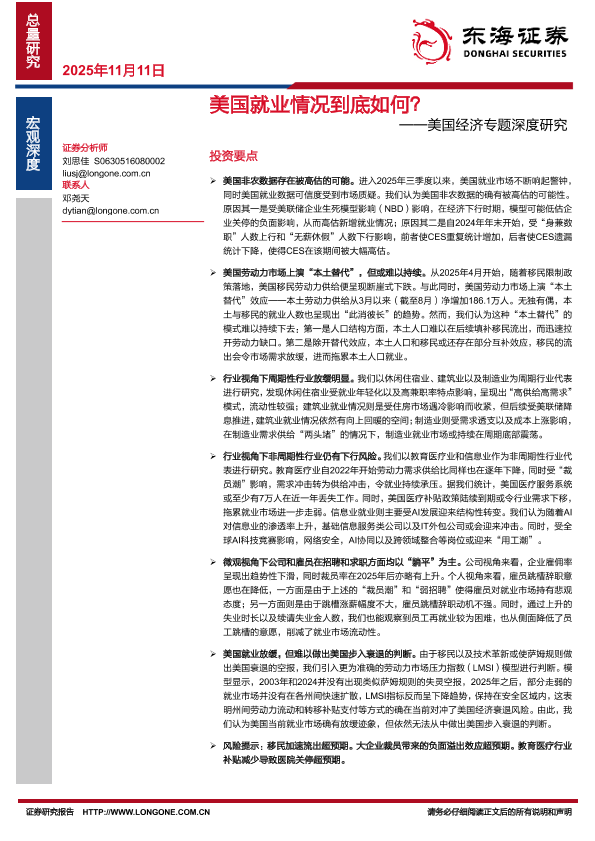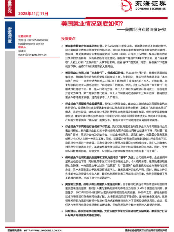 【东海证券】【202511】美国就业情况到底如何?——美国经济专题深度研究-28页
