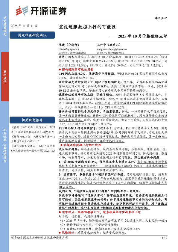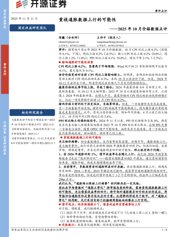 【开源证券】【202511】重视通胀数据上行的可能性——2025年10月价格数据点评-9页