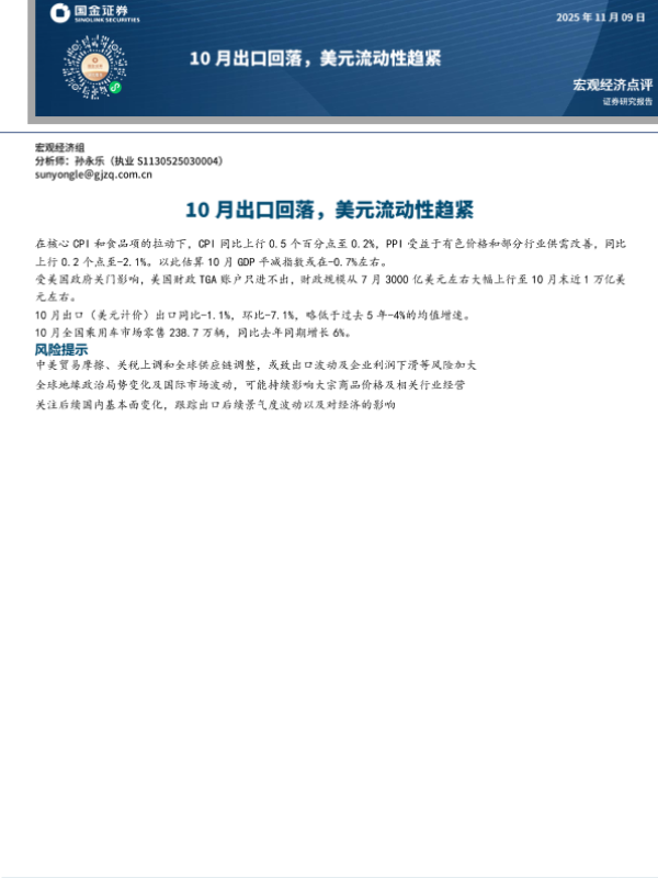 【国金证券】【2024】宏观经济点评:10月出口回落,美元流动性趋紧-7页