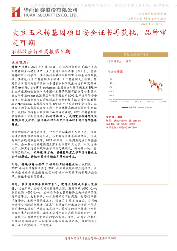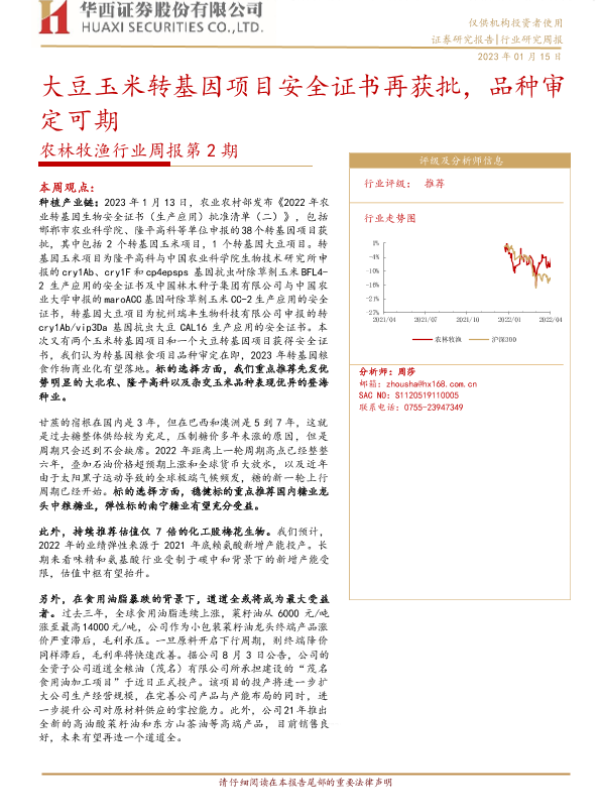 【华西证券】【20230115】农林牧渔行业周报第2期:大豆玉米转基因项目安全证书再获批,品种审定可期-25页