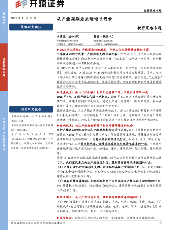 【开源证券】【202511】从产能周期看业绩增长线索-9页