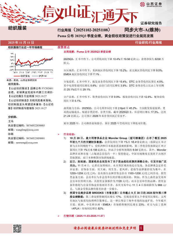 【山西证券】【202511】纺织服装 行业周报(20251102-20251108)同步大市-A(维持)-19页