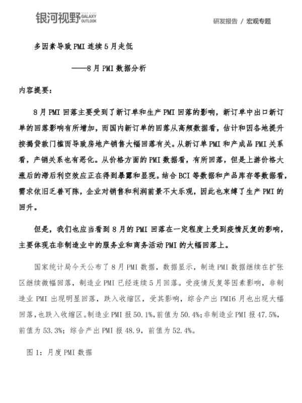 【银河期货】【20210901】宏观专题:8月PMI数据分析,多因素导致PMI连续5月走低-16页