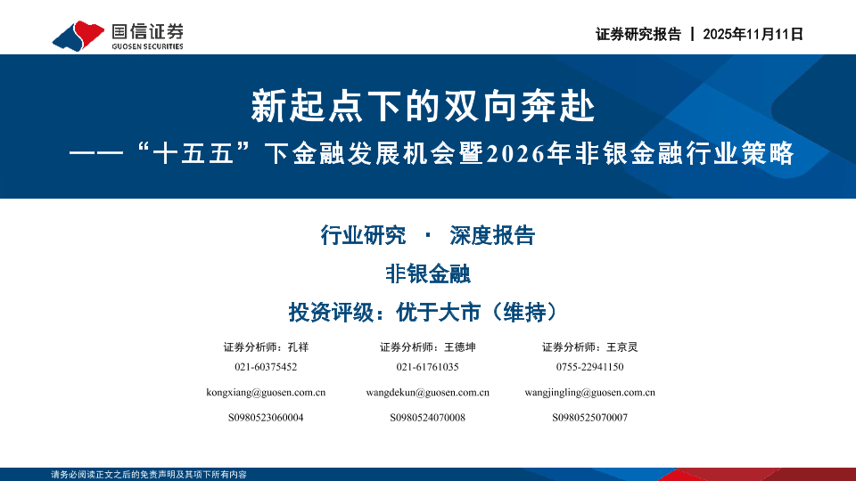 【国信证券】【202511】新起点下的双向奔赴——“十五五”下金融发展机会暨2026年非银金融行业策略-94页