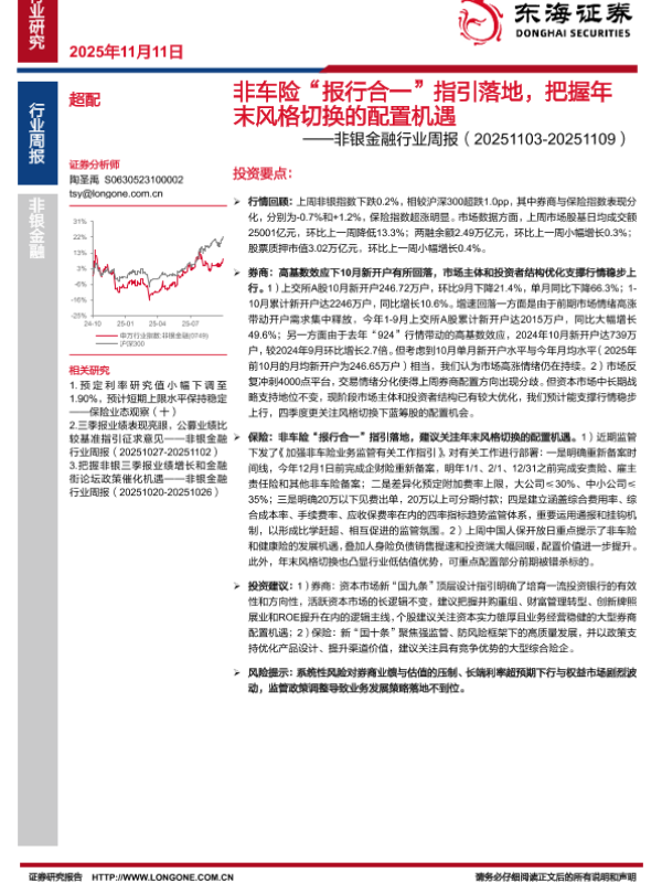 【东海证券】【202511】非车险“报行合一”指引落地,把握年末风格切换的配置机遇-9页