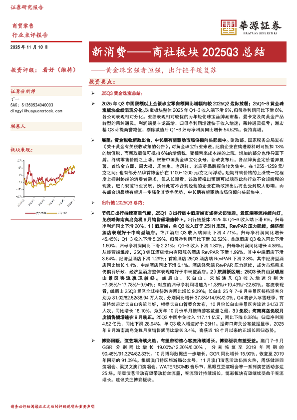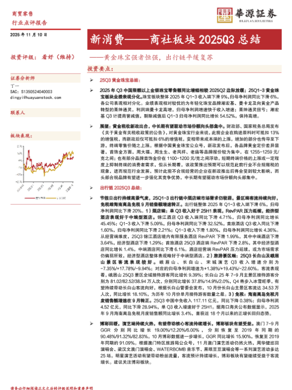 【华源证券】【202511】新消费——商社板块2025Q3总结:黄金珠宝强者恒强,出行链平缓复苏-10页