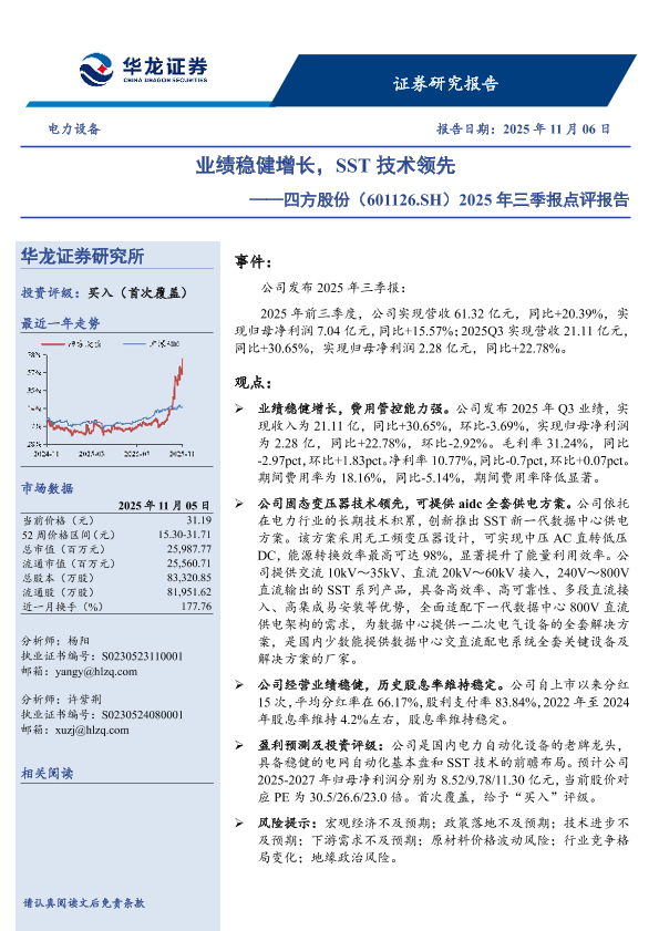 【华龙证券】【202511】业绩稳健增长,SST技术领先——四方股份(601126.SH)2025年三季报点评报告-4页