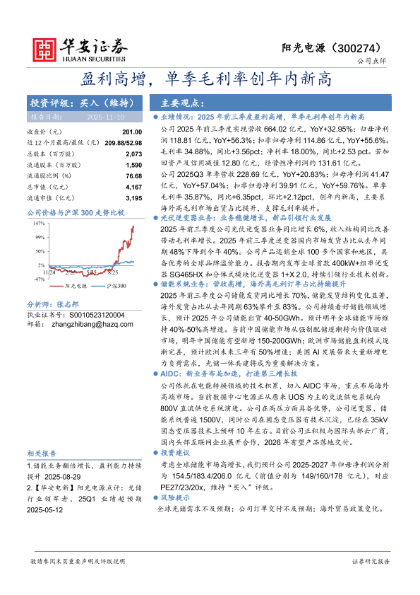 盈利预测 毛利率提升 储能系统 AIDC 光伏逆变器