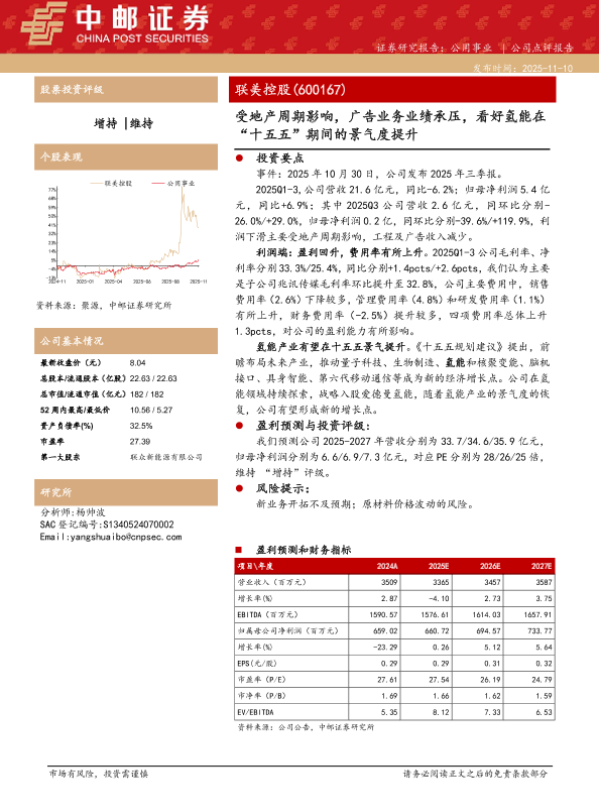【中邮证券】【202511】受地产周期影响,广告业务业绩承压,看好氢能在“十五五”期间的景气度提升-4页