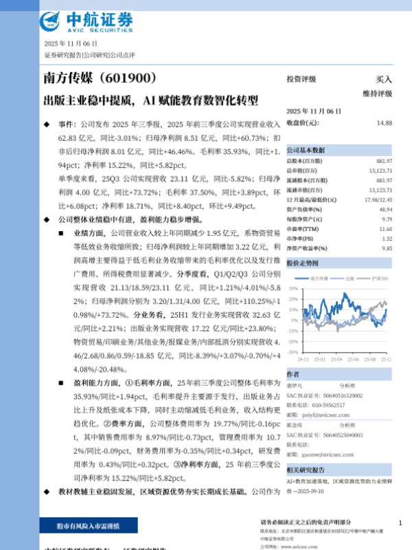 【中航证券】【202511】出版主业稳中提质,AI赋能教育数智化转型-5页